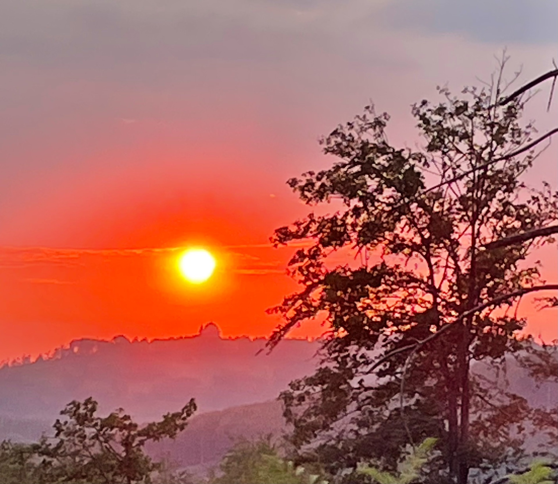 Předpověď hlásila 35 °C, tak když Camino, tak Hostýn i v parnu. Auto jsme zaparkovaly ve Chvalčově u hotelu Říka, kde jsme chtěly začít obědem, ale bohužel mívají pondělky a úterky zavřeno. Proto jsme se vrátily k Hostinci Pod lipami. Jídlo jak od maminky a za lidové ceny. Odtud směrem ke žluté turistické značce a dál vzhůru k Vodní kapli. Ne, nepřeslechla jsem se. Dívka sedící na lavičce před pramenem zaníceně vypráví svému druhovi o Santiagu. Zavedly jsme řeč, předaly si kontakty, doporučení na film The Way a shodly se, že poutníci už se shlukují. Na Hostýně jsme strávily příjemné odpoledne a na večer se vydaly ke Třem kamenům, kde jsme měly naplánovaný nocleh. Poprvé jsem viděla nádherný západ slunce nad Hostýnem.